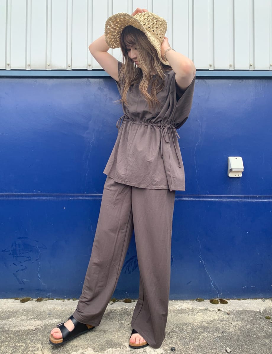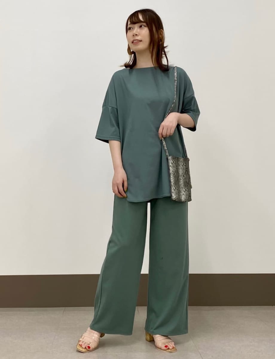 ボトムスは、落ち感があるのでスタイルアップ効果も期待できますよ◎