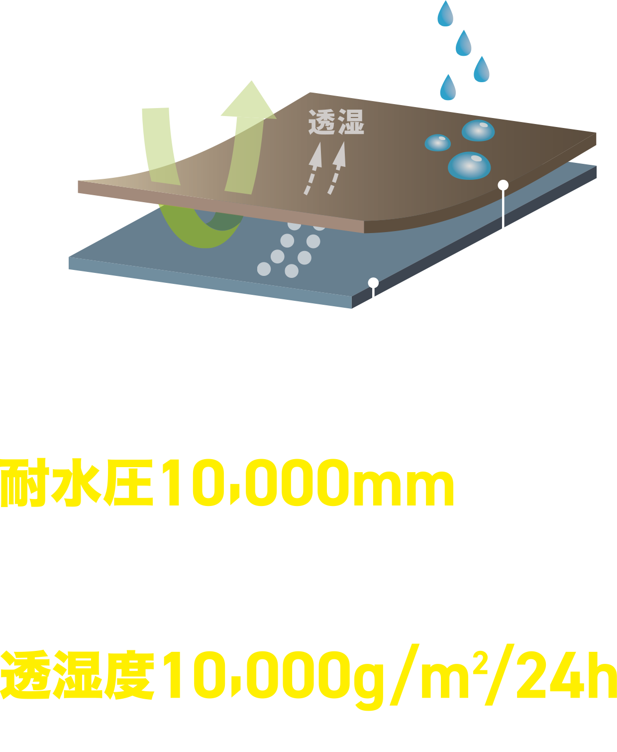 耐水圧 10,000mm のはっ水性と