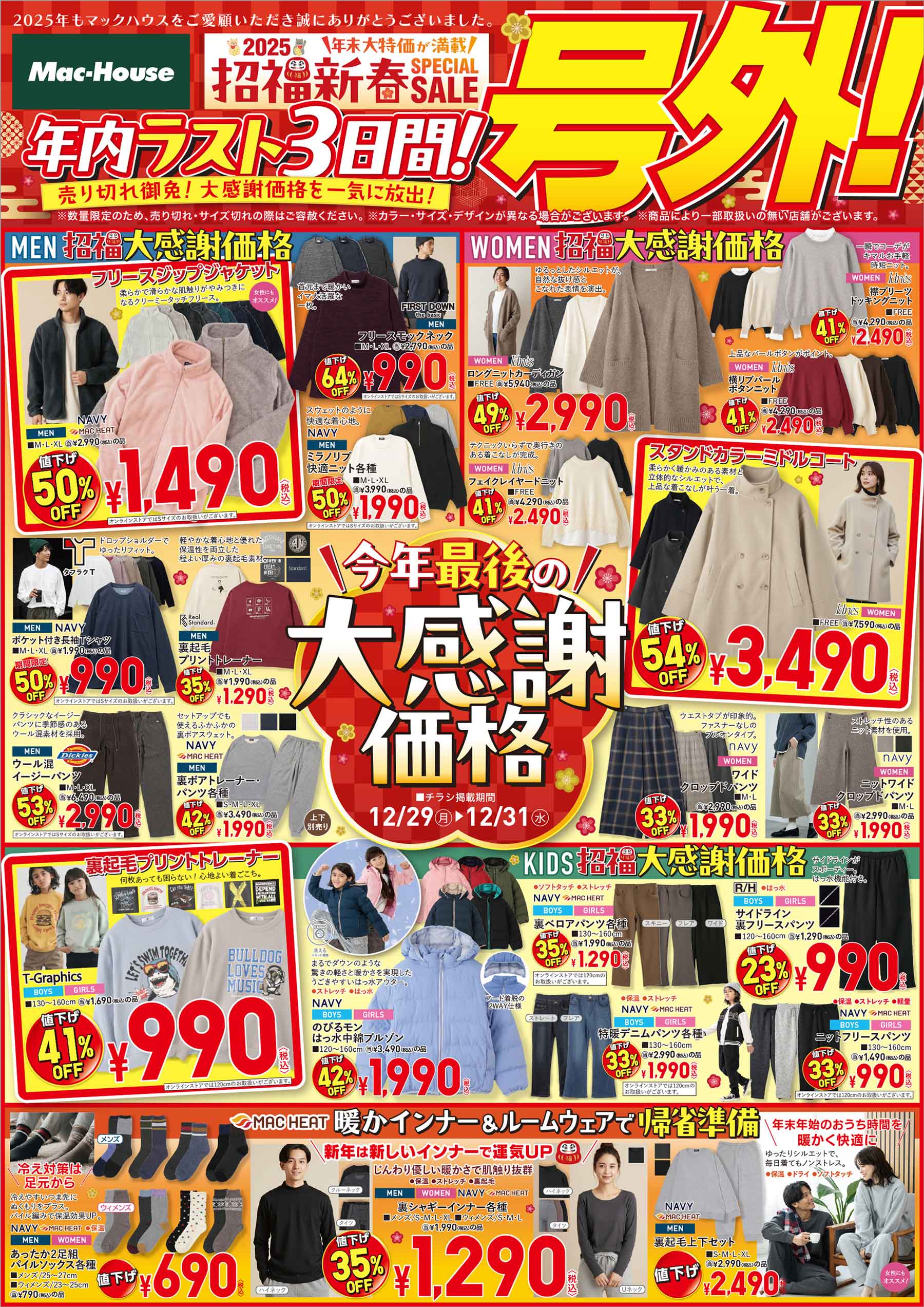 鶴岡S-MALL店住所山形県鶴岡市錦町2-21 S-MALL2F電話番号080-5909-3378営業時間10:00~20:00(※1/4 10:00~19:00) 以下のチラシは鶴岡S-MALL店のチラシとなります。必ずご来店いただく店舗のチラシをご確認ください。